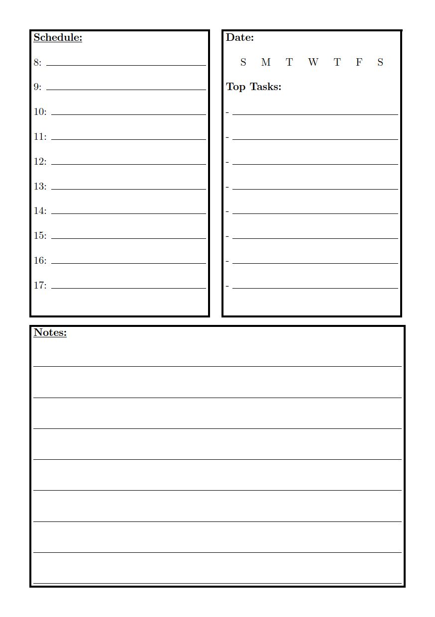 I have already updated the general page. The lines are now blue, and I added a second blank page for notes. I still haven't figured out how to use a unicode value for the tasks, but for now I will just make my own box to check. You can download the pdf here
